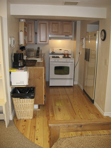 The second room is carpeted with a hand-carved wooden trundle/daybed for guests. The kitchen has a large refrigerator, stove, microwave and is fully equipped. There is a washing machine and dryer, television, and high speed internet.